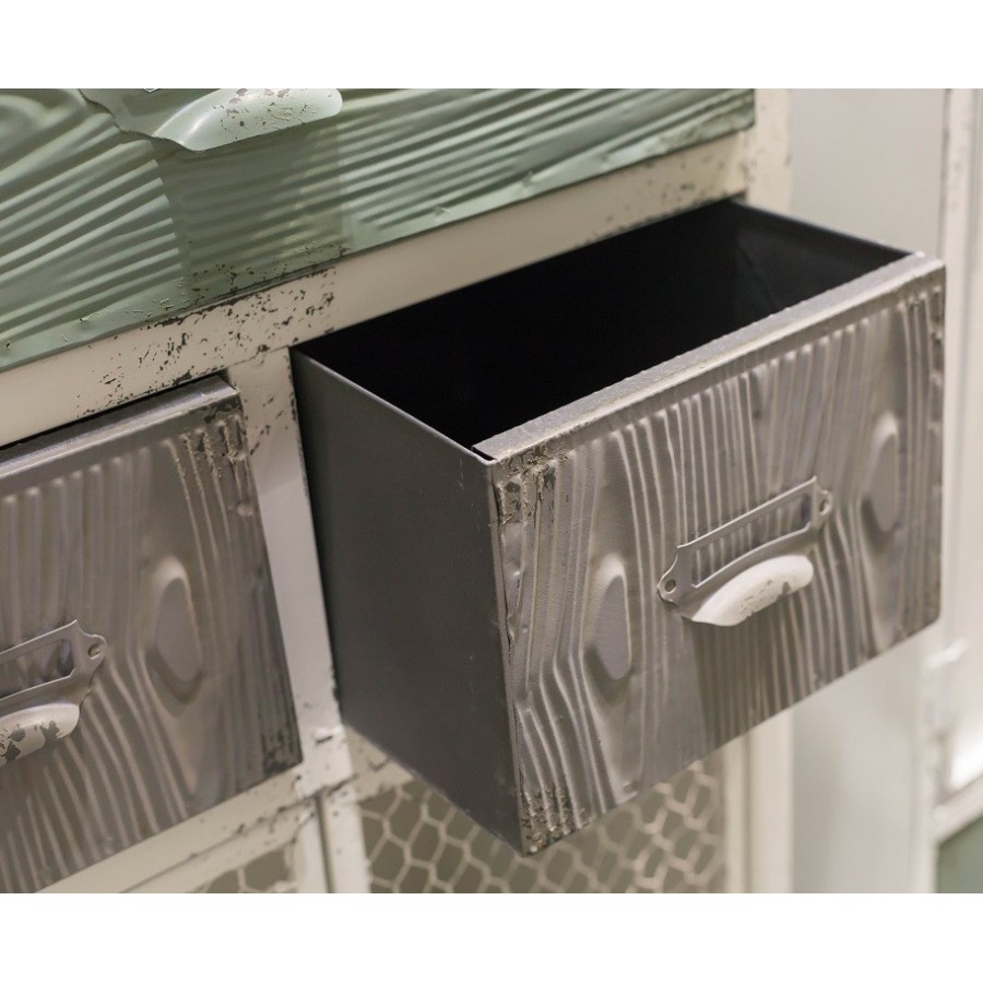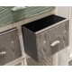 Szafka Aluro w stylu prowansalskim, stojąca na nóżkach, wyposażona w trzy szuflady i dużą półkę.