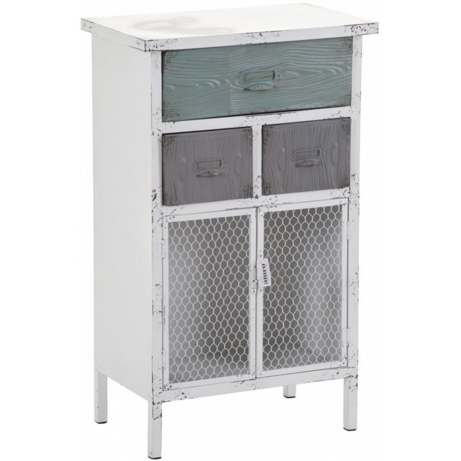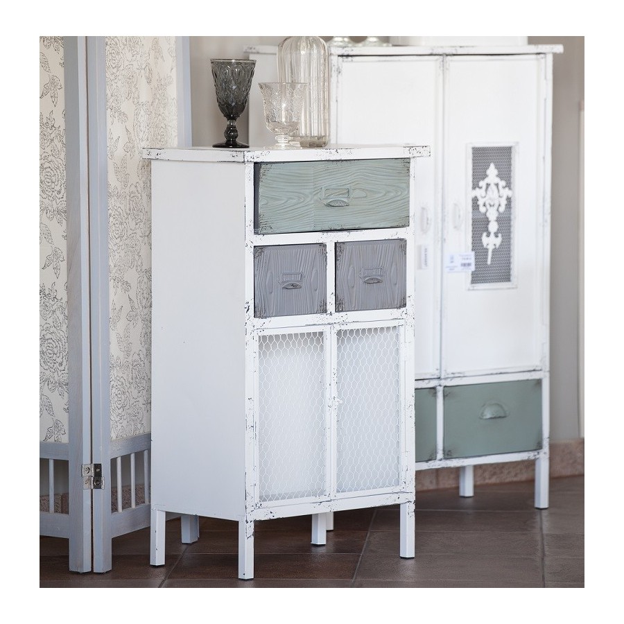 Szafka prowansalska Lamali Aluro, to wyjątkowa propozycja dla osób ceniących sobie harmonijność i piękno. Szafeczka, reprezentująca meble w stylu prowansalskim w kolorze białym, stojąca na czterech nóżkach posiada efektowne i ładnie wykonane przetarcia. Szafkę wyposażono w trzy szuflady: w kolorze ciemnego fioletu i morskim, a także w przestronną półkę, zamykaną ładnymi, prześwitującymi drzwiczkami o siateczkowej strukturze. Szafka posiada blat, który może posłużyć, jako dodatkowe miejsce na umieszczenie bibelotów. To niezwykle piękny mebel, który doda mieszkaniu prowansalskiego uroku. Obejrzyj inne Meble Aluro!