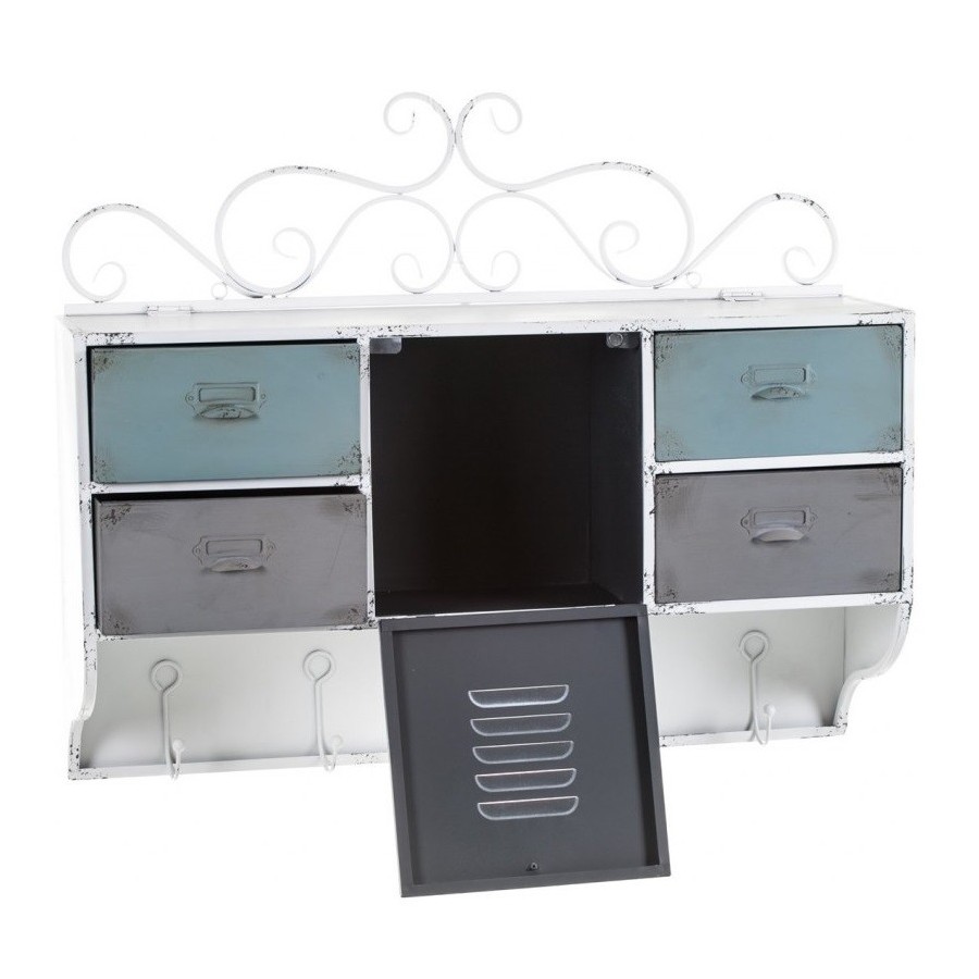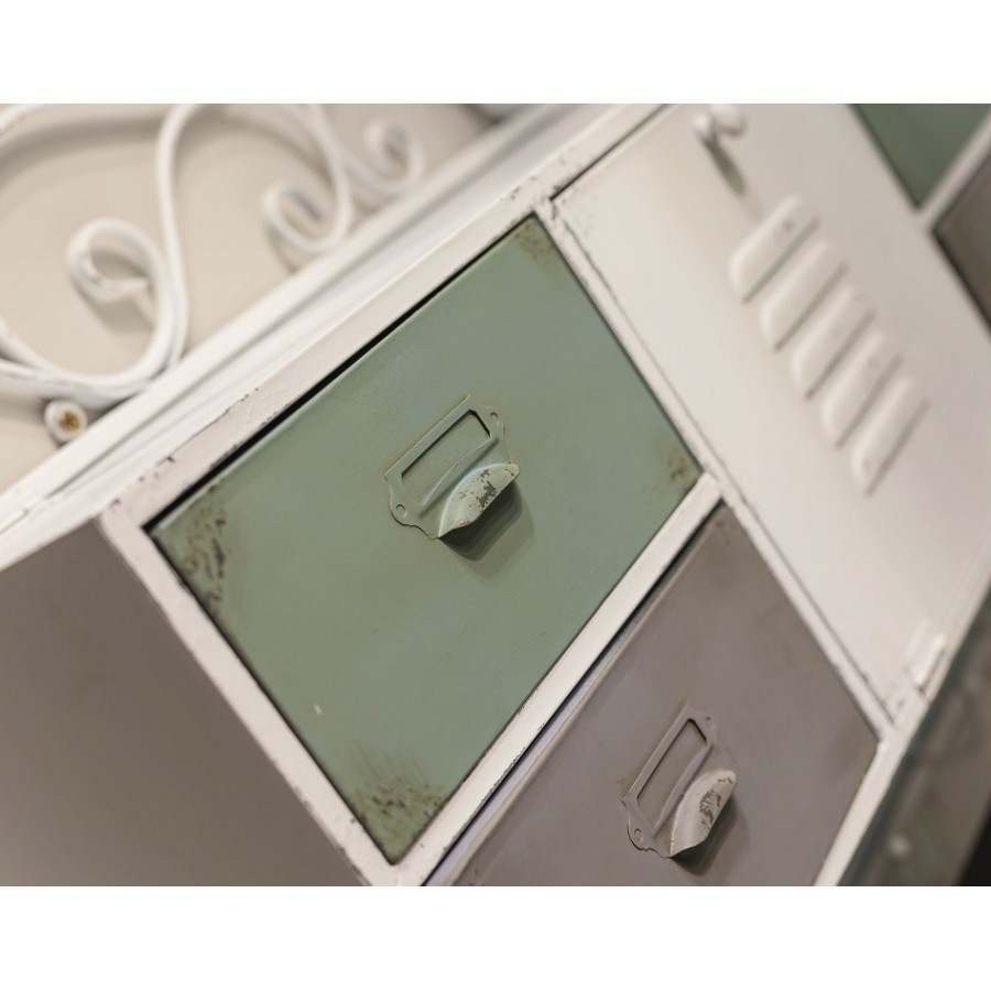 Szafka prowansalska Lamali Aluro to przedstawicielka mebli w stylu prowansalskim. Ten niezwykle uroczy, metalowy mebelek, wyposażony jest w pięć pojemnych szafek: dwie są w kolorze ciemnego fioletu, dwie w kolorze morskim i jedna o białej barwie. Pod szafkami umieszczono ładne i skromne wieszaki. Nad szafeczkami natomiast, umieszczono piękną dekorację – metalową ozdobę o falistej, miękkiej linii, która w subtelny sposób dodaje meblowi iście prowansalskiego uroku. Polecamy inne meble w stylu prowansalskim!