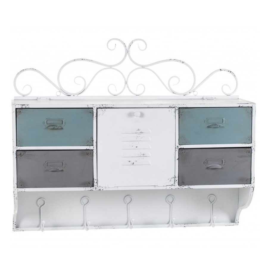 Szafka wisząca, reprezetująca meble prowansalskie to wyposażona w pięć, pojemnych szafeczek i pięć ładnych wieszaków.