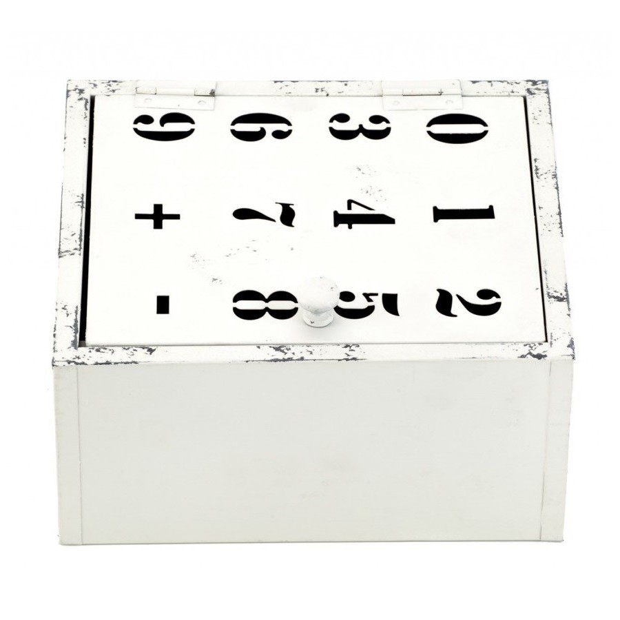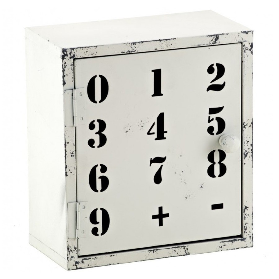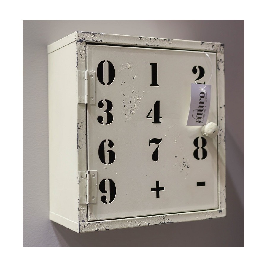Industrialna metalowa szafka Aluro z motywem cyfr i znaków + i - na drzwiczkach. Efektowna i stylowa.