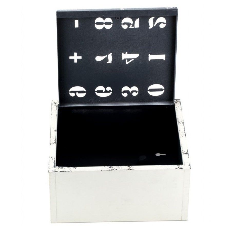 Metalowa szafka wisząca w stylu industrialnym. Surowy, kanciasty, prostopadłościenny kształt z otwieranymi drzwiczkami. Może słuzyć jako szafka na klucze, kosmetyki, przyprawy - zastosowanie bardzo uniwersalne.