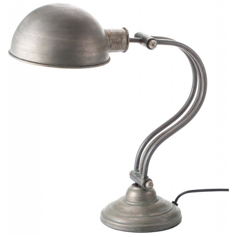 Lampa Mazine to lampa industrialna o ładnym kształcie i metalicznym kolorze, przeznaczona do postawienia na biurko.