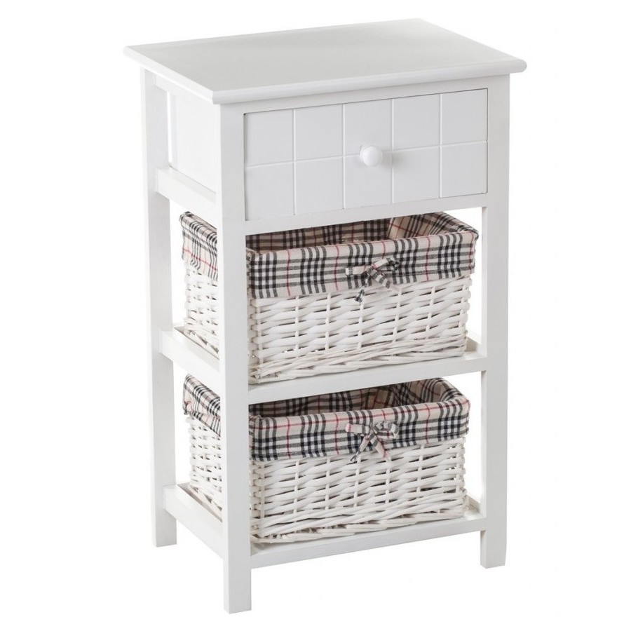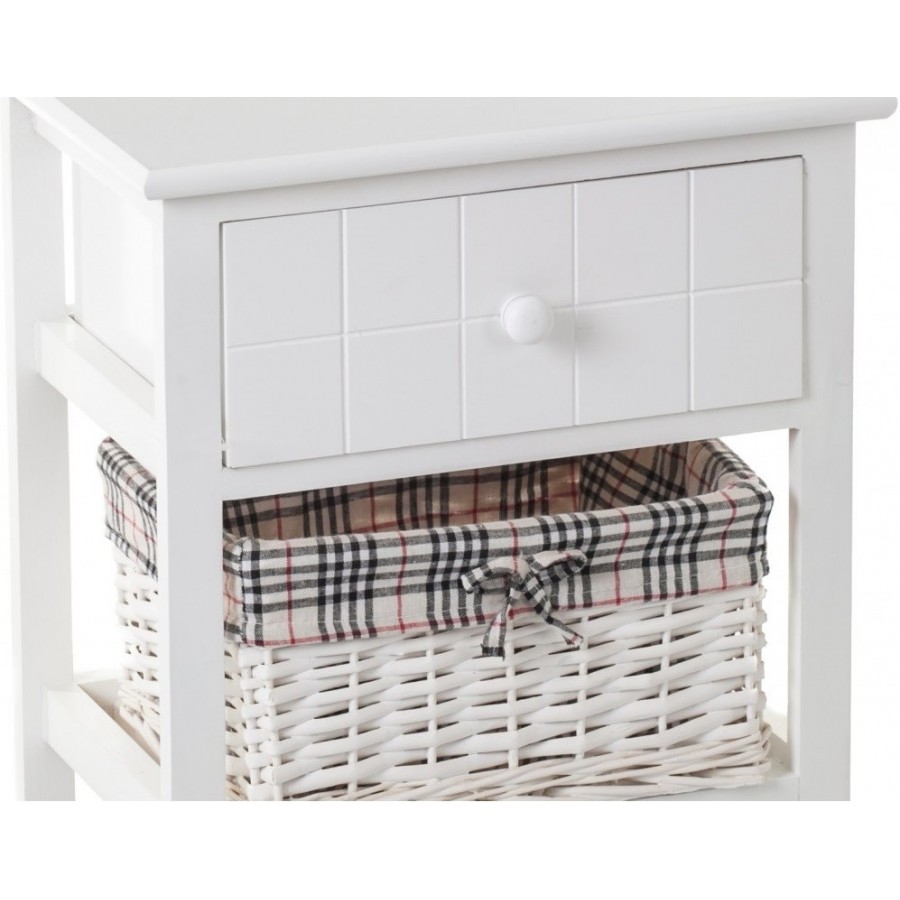 Zgrabna, funkcjonalna i śliczna szafka z serii Filatti marki Aluro z pojemną szufladą i wiklinowymi koszyczkami.