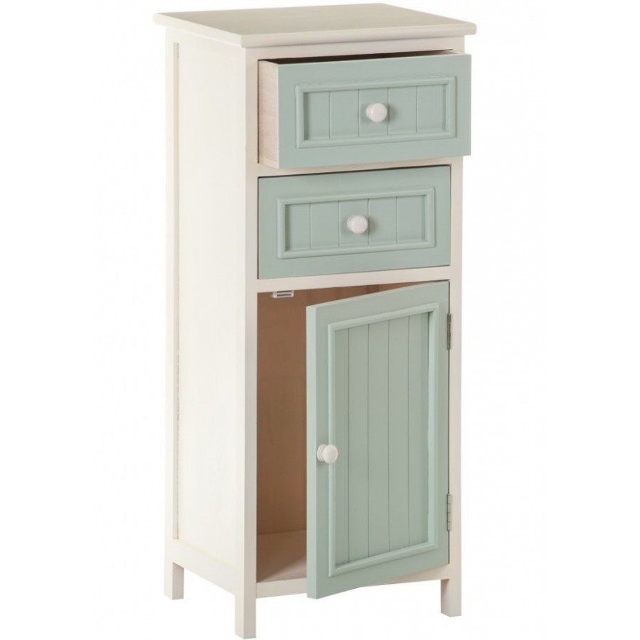 Szafka Minti Aluro jest jednym z mebli wykonanym w stylu prowansalskim, wyposażonym w dwie barwione na miętowo szuflady z ładnymi, funkcjonalnymi, kulistymi uchwytami o kremowym kolorze a także w jedną półkę, zamykaną urodnymi drzwiczkami. Szafeczka będzie doskonałym mebelkiem łazienkowym, ale cudownie sprawdzi się też, jako element wystroju dziecięcego pokoju. Polecamy inne meble Aluro. Polecamy meble prowansalskie.