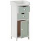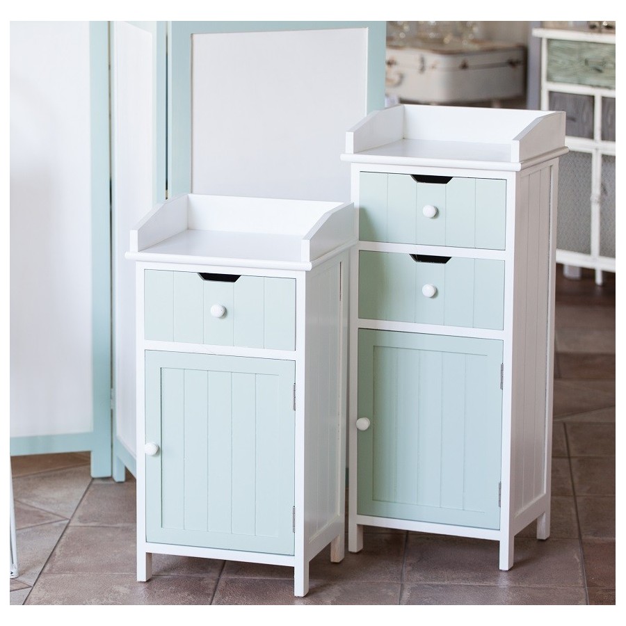 Szafka Minti Aluro, wykonana w stylu prowansalskim to nie tylko piękny i gustownie komponujący się w przestrzeń mieszkalną mebel, ale także to niezwykle kształtna i proporcjonalna propozycja dla miłośników prowansalskiego stylu. Szafka posiada dwie szuflady i jedną półkę o dużej pojemności. Na samej górze mebelka, znajduje się ładny blat z misternie wyprofilowaną obudową, dzięki której nawet najcenniejsze przedmioty, nie spadną na ziemię. Szafka jest urocza, ale także i funkcjonalna, dlatego w idealny sposób wpasuje się na przykład w przestrzeń pokoju dziecięcego. Tonacja kolorystyczna szafki to delikatna mięta oraz biel. Polecamy meble w stylu prowansalskim!