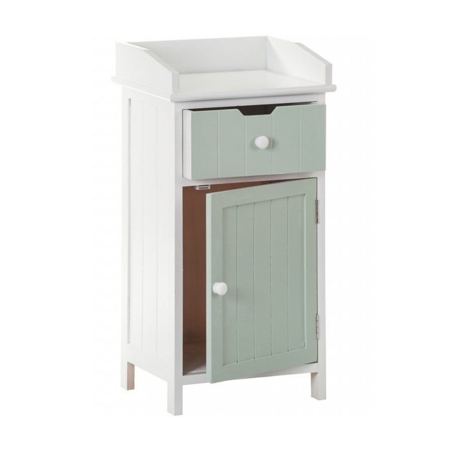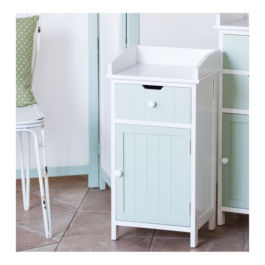 Meble w stylu prowansalskim reprezentuje szafka Minti - uroczy mebel wykonany z drewna w barwie białej i miętowej.