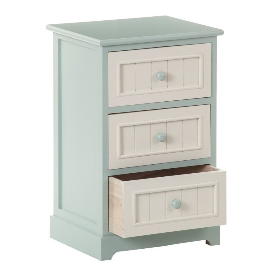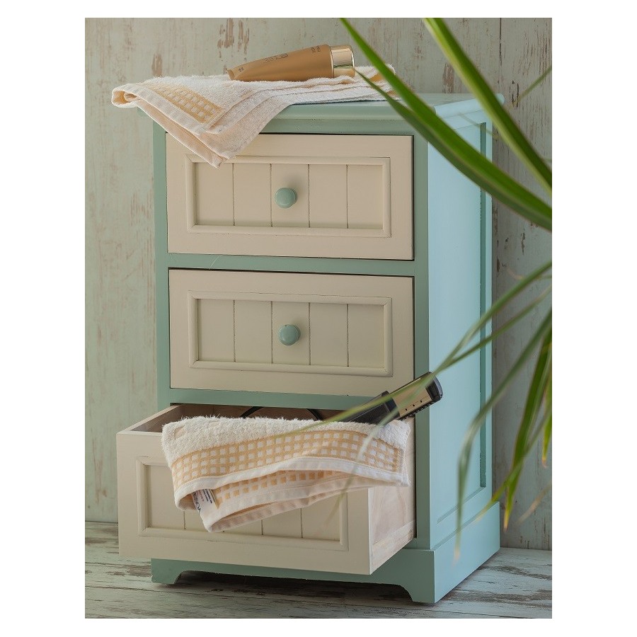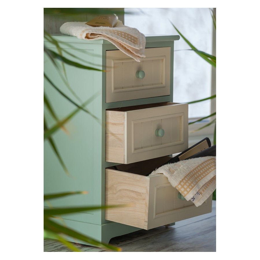 Szafka Minti Aluro to mebel w stylu prowansalskim o harmonijnej i proporcjonalnej budowie, wyposażony w trzy szuflady z miętowymi, poręcznymi, kulistymi uchwytami. Szafka utrzymana jest w tonacji beżu i mięty – połączenie to w znakomity sposób współgra z sobą, tworząc zgrabną całość. Mebelek posiada piękne kształty, jest również funkcjonalny. Górę szafki stanowi blat, który można zagospodarować w dodatkowy sposób. Polecamy inne meble dziecięce z kolekcji Aluro!