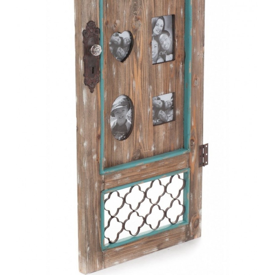 Ramka Mazine Aluro to zupełnie oryginalna i nietypowa ramka przeznaczona do gustownego przechowywania zdjęć. Ramka, bowiem wykonana jest na tle drewnianych drzwi z uroczą, metalową, okrągłą klamką. Na górze i na dole drzwi, widnieją metalowe zdobienia. W ramce można umieścić zdjęcia w różnym kształcie: kwadratu, koła, serca, prostokąta, owalu. To wyjątkowa ozdoba, która w znamienity i wyjątkowy sposób wpłynie na wystrój Twojego mieszkania!