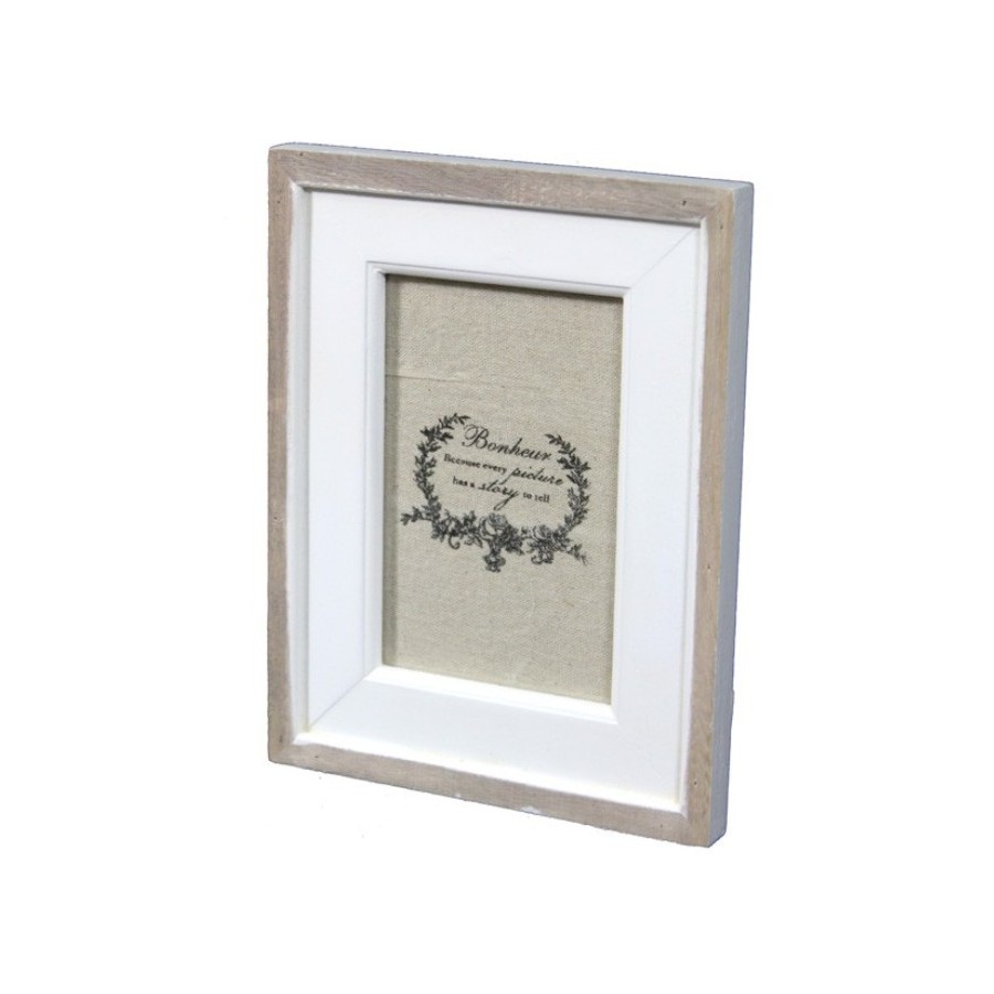 Niezwykła drewniana ramka na zdjęcie z dwókolorowym obramowaniem: zewnętrzna część to naturalne, lekko postarzane drewno, wewnętrzna część jest pomalowana na biało. Dzięki takiej kompozycji kolorów ramka na zdjęcie urzeka klasyczną prostotą i pięknem.