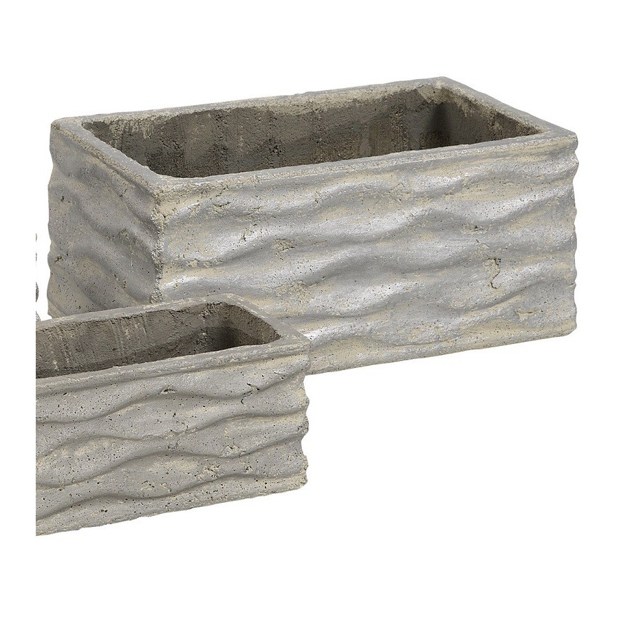 Podłużne osłonki na doniczki z serii Belldeco to osłonki ceramiczne, przeznaczone na doniczki w prostokątnym kształcie. Całość wykonana jest z masy cementowej, barwiona na szaro ze srebrnymi przetarciami. Osłonki są zdobione skromnie, ale uroczo – dekorację stanowią falowane żłobienia, umieszczone po bokach osłonek.