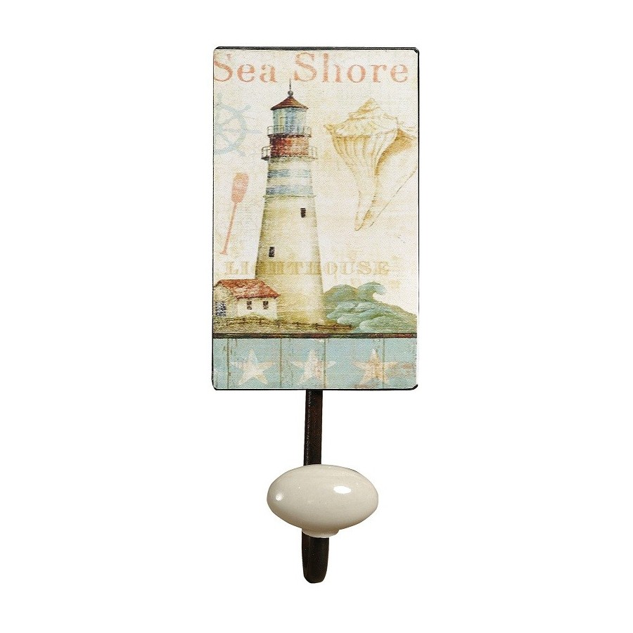 Wieszaki ścienne Belldeco Marina to urocze wieszaki z obrazkiem latarnii morskiej, domku latarnika oraz wizerunkiem muszli.