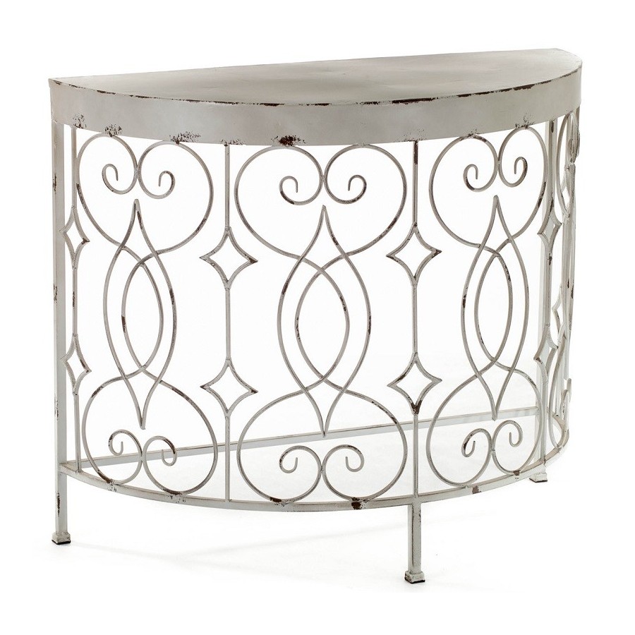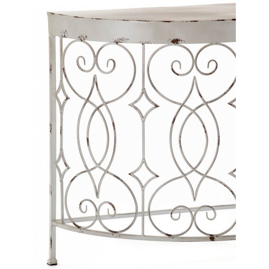 Konsola Aluro Bertoni to nieprzeciętny mebel, który z pewnością upiększy każdą powierzchnię ogrodową. Konsola została wykonana z metalu i wyprofilowana na kształt półkola a następnie pokryta białą, elegancką farbą oraz poprzecierana, co uczyniło ją meblem o prawdziwie prowansalsko wykwintnym charakterze. Piękno konsoli przejawia się w jej zdobieniach, które pokrywają przednią jej część, prezentując się w bardzo efektowny sposób. Zalecamy inne metalowe meble - meble ogrodowe i do mieszkania z kolekcji Aluro Bertoni!