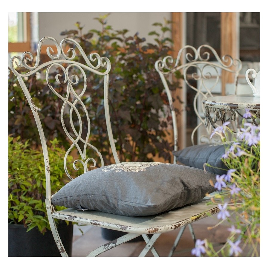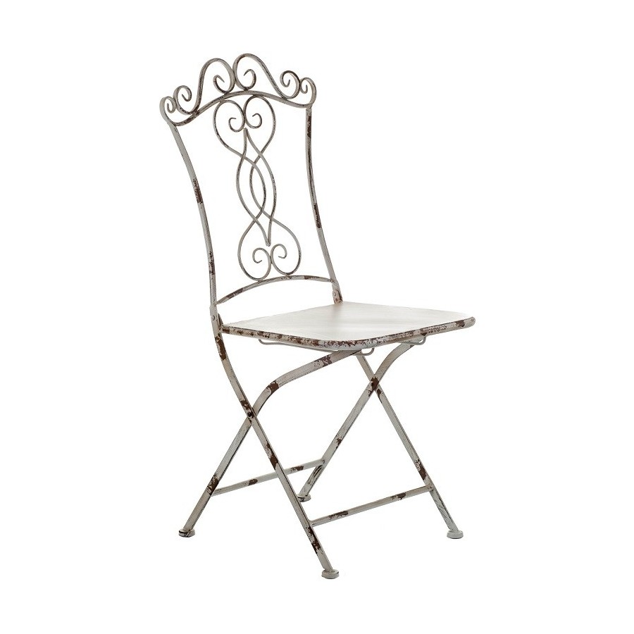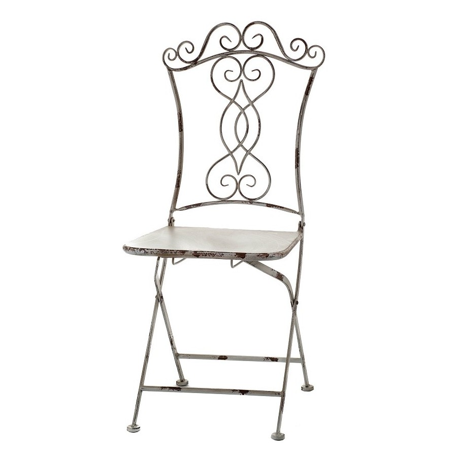 Krzesło Aluro wykonane w stylu prowansalskim, o pięknie ozdobionym oparciu i gustownie stworzonych przetarciach jest przeznczone do ogrodów i pomieszczeń.