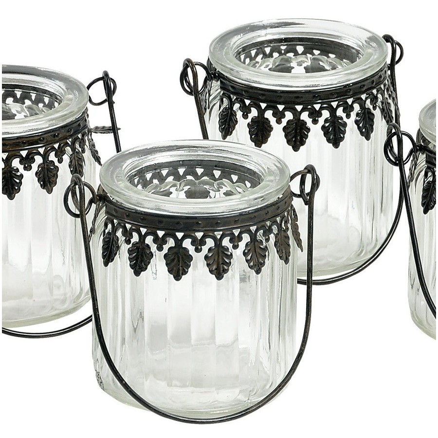 Szklany lampion Belldeco to wyśmienita ozdoba uformowana na kształt ładnego słoja, o grubych ściankach. Świetlik posiada ciekawe, orientalne zdobienie – dookoła jego szyjki umieszczono metalową obręcz z ładnie wyprofilowanymi listkami. Ten uroczy lampion do powieszenia posiada druciany pałąk o mocnej konstrukcji. Świetlik rozświetli otoczenie, wypełniając je ciepłym, blaskiem pomarańczowego ognia.
