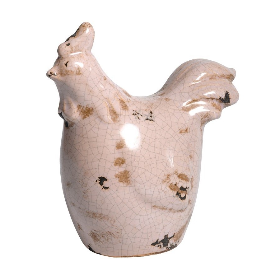 Kura Belldeco to pełna uroku ceramiczna figurka, której nadano kształt pękatej kurki. Na powierzchni tego pięknego, błyszczącego się dodatku do pomieszczeń, umieszczono gustowne pęknięcia oraz postarzenia. Kurkę wypolerowano i pomalowano na kolor łososiowy. Ceramiczna kura Belldeco wpasuje się w wystrój każdego pomieszczenia!