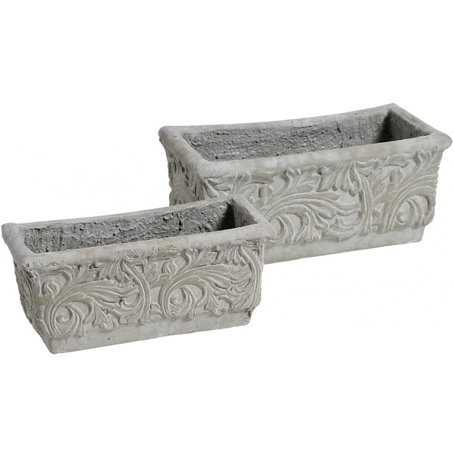 Osłonki na doniczki z serii podłużnych osłonek Belldeco to naczynia ceramiczne w kształcie prostokąta w szarym kolorze. Boki osłonek ozdobiono wyjątkowo pięknie wyglądającą dekoracją o motywie roślinnym.