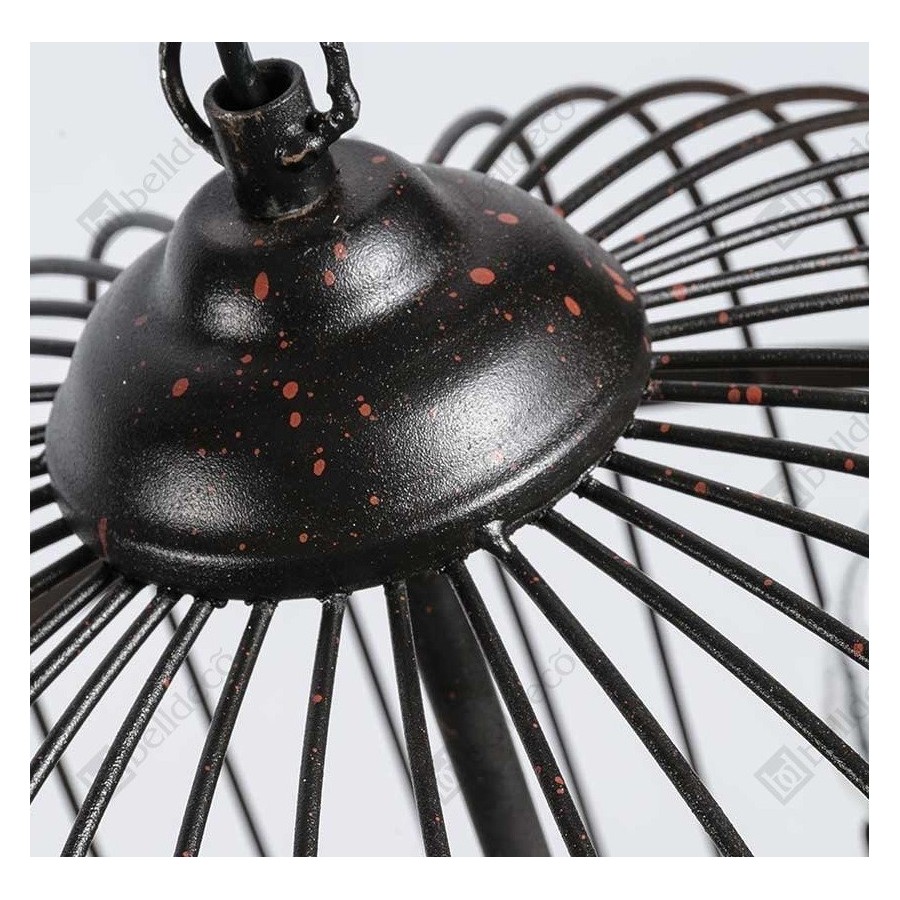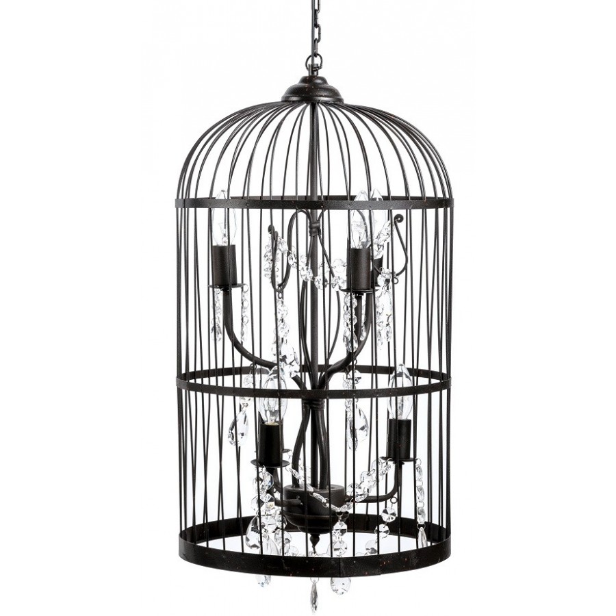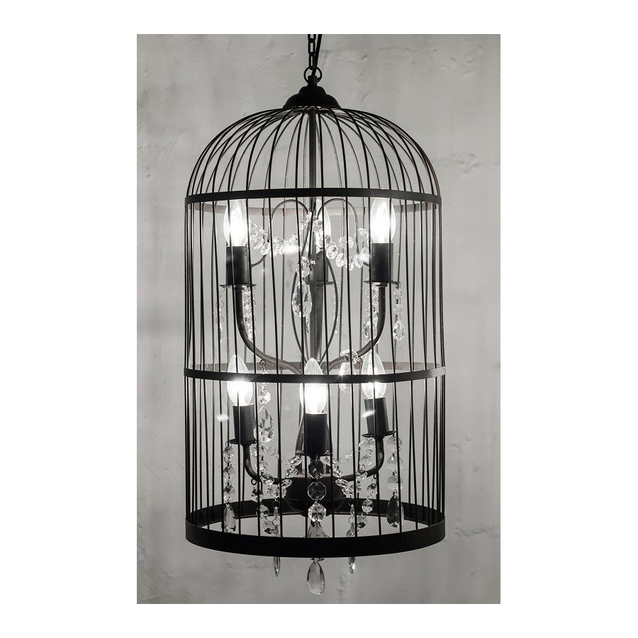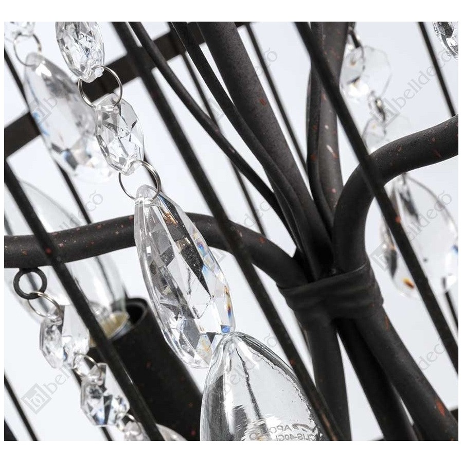 Metalowa lampa Belldeco w kształcie klatki to piękna, oryginalna lampa francuska z serii lamp Belldeco. Wewnątrz ozdoby, umieszczono stojak na cztery żarówki, który udekorowano łańcuchem z plastikowych kryształków. Do klatki doczepiono łańcuch, dzięki czemu można ją zawiesić. Polecamy inne lampy francuskie!