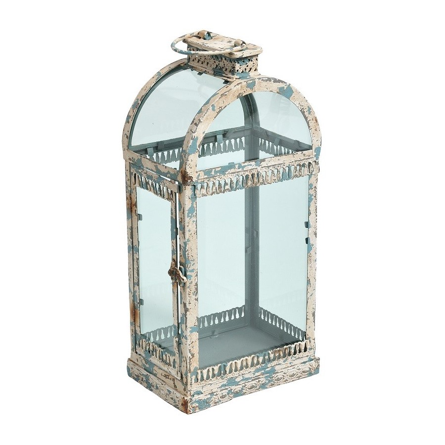Wysoki Lampion Belldeco Bosco stylizowany na wiekową skrzyneczkę o szklanych ściankach i metalowej konstrukcji z drzwiczkami, to piękny element dekoracyjny wzbogacony o starannie wykonane postarzenia, naniesione na białą obudowę lampionu. U góry świecznika umieszczono uchwyt. Obejrzyj inne lampiony prowansalskie - zachęcamy!