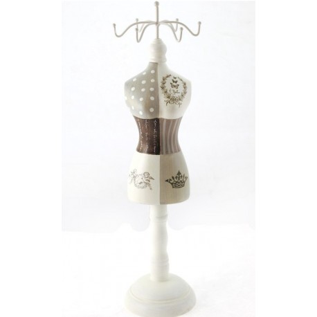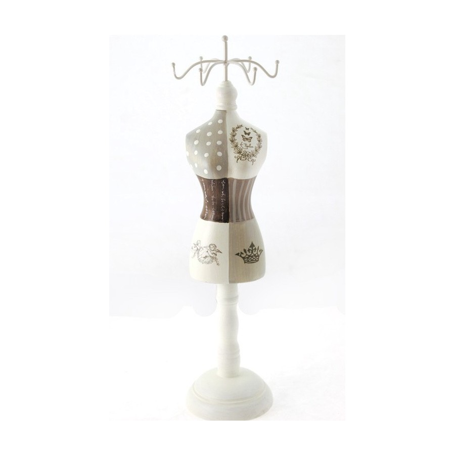 Stojaki na biżuterię Belldeco to wyjątkowo ładnie skonstruowane stojaki, wykonane z drewna i metalu. Stojaczkowi Paris nadano kształt kobiecego korpusu i przyozdobiono go wizerunkiem motyla, aniołka, biało-brązowymi kropkami oraz paskowaniem.