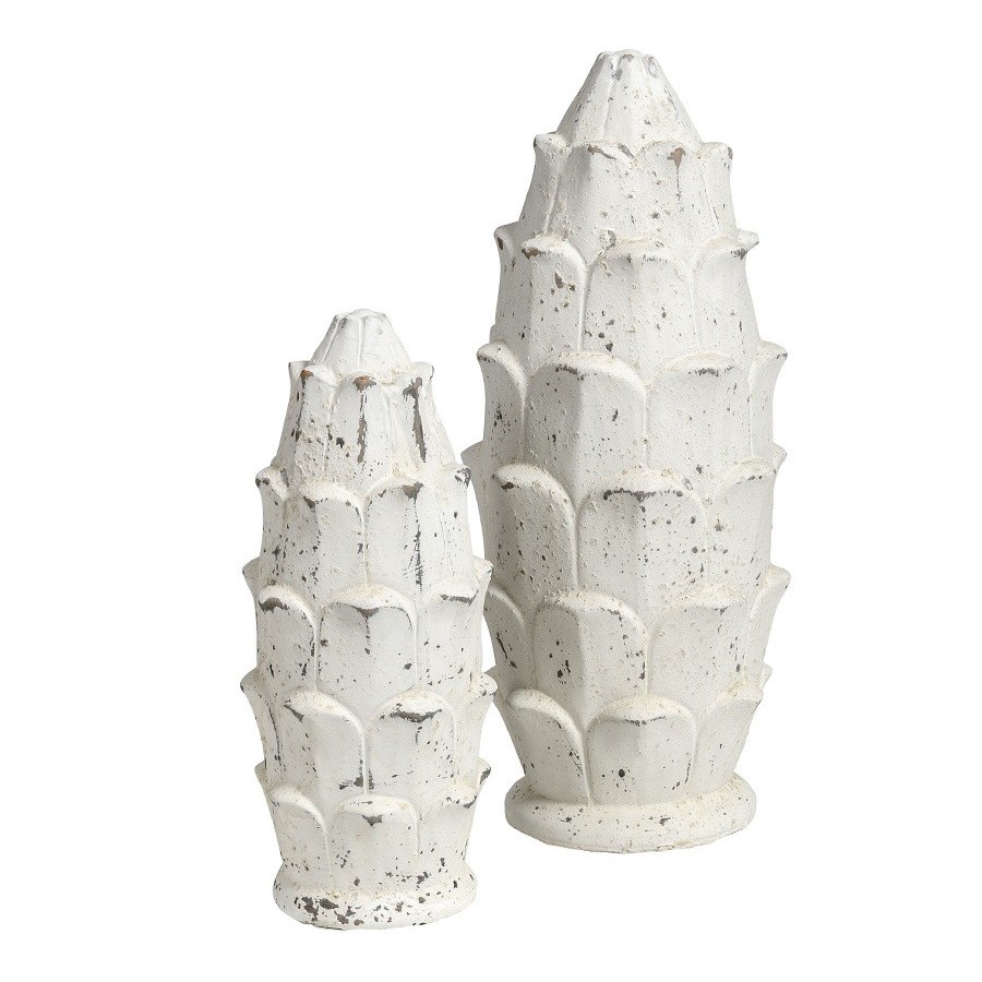 Figurka karczocha to niesztampowa ozdoba mieszkania, pomalowana na biało i poddana zabiegom postarzającym.