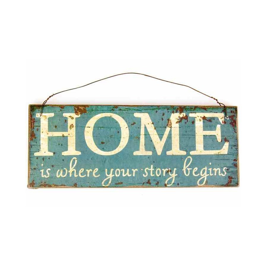 Prostokątna, wykonana z drewna zawieszka, posiadająca druciany uchwyt, służący do umocowania w pomieszczeniu, to ładny i niebanalny dodatek do pokoju. Na niebieskim tle o rdzawych postarzeniach, umieszczono napis w języku angielskim o dużej, czytelnej czcionce. Tabliczki z napisami - polecamy!