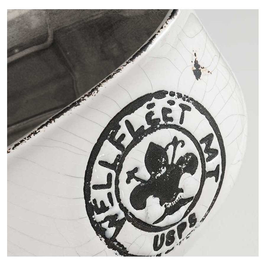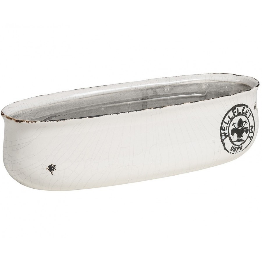 Korytko Roma w stylu prowansalskim to ładnie wykonana osłonka na doniczki, pokryta białą farbą, na której umieszczono stylowe postarzenia.