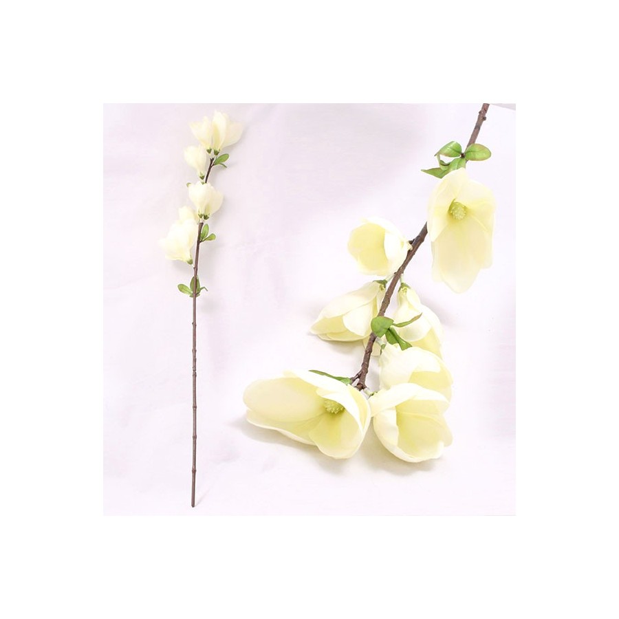 Sztuczna magnolia to pięknie wyglądająca łodyżka z przywieszonymi do niej kielichami białych kwiatów i zielonymi listkami. Kwiat z pewnością ładnie udekoruje pomieszczenie. Kwiaty sztuczne - piękne cały rok!
