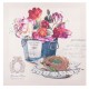 Obrazy prowansalskie z wizerunkiem doniczki z uroczym bukietem kwiatów oraz białymi ptaszkami, to piękna ozdoba pokoju.