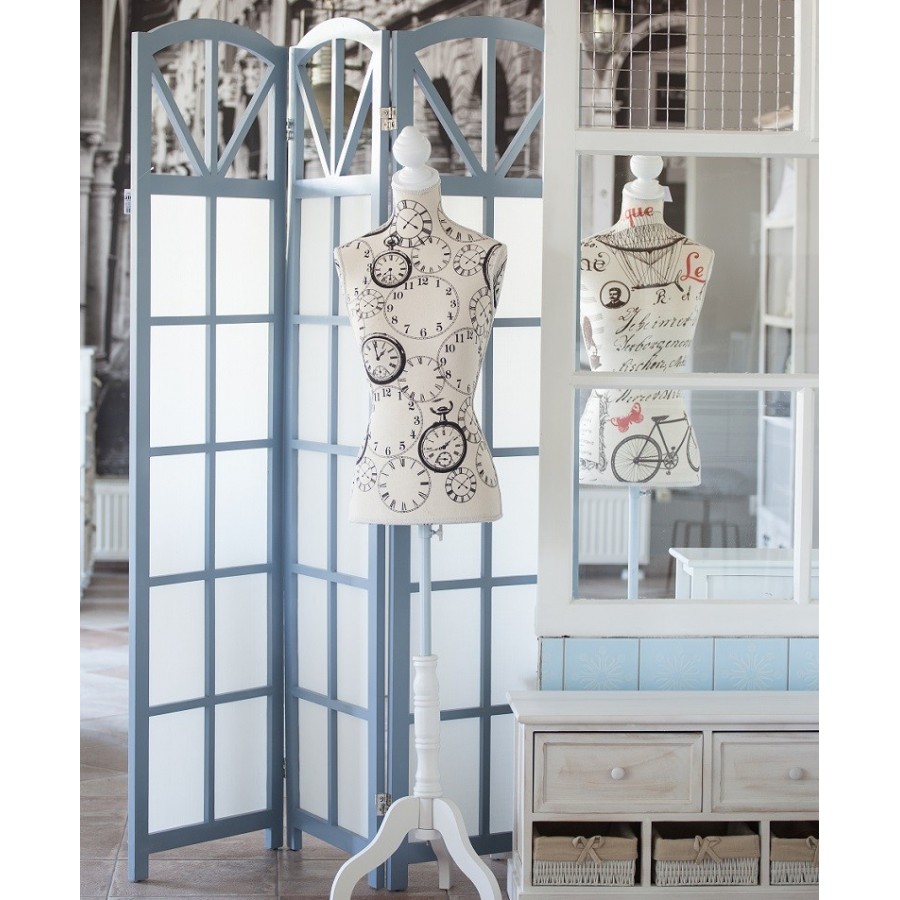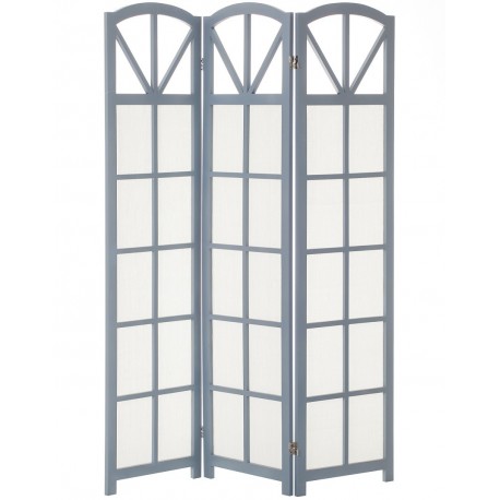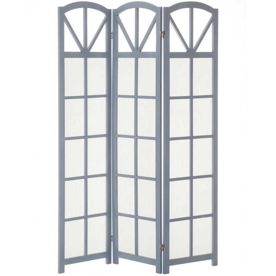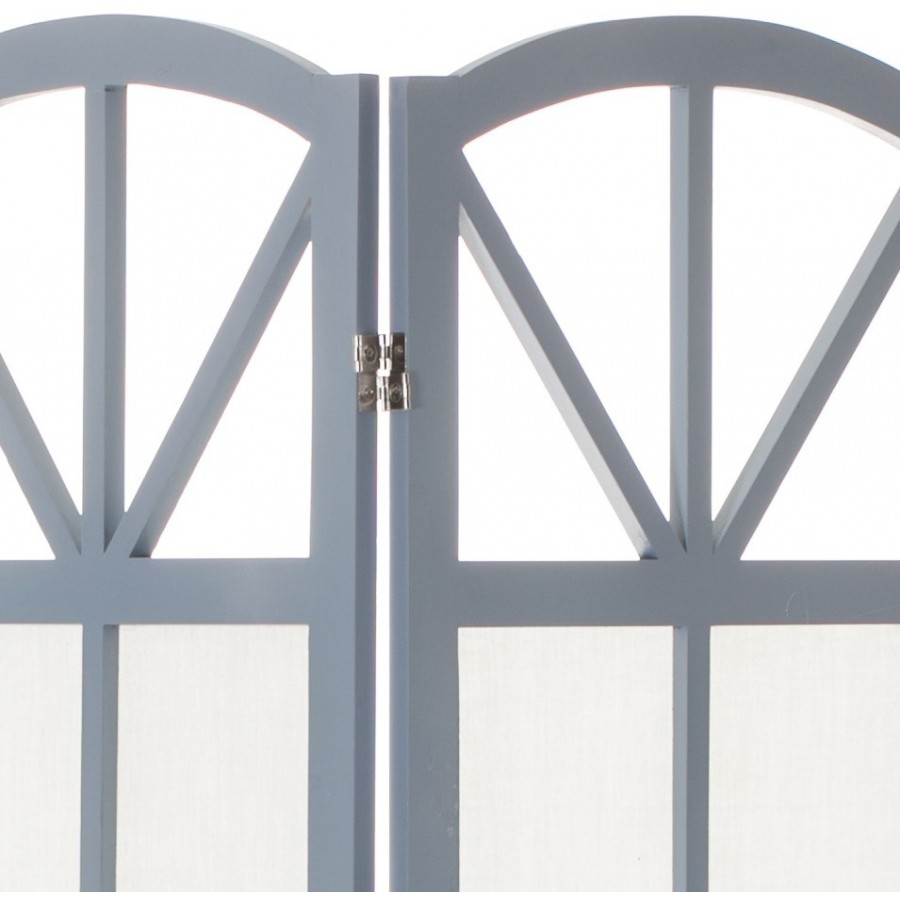 Elegancki parawan w stylu prowansalskim złożony z trzech niezależnych części połączonych ruchomymi nawiasami.
