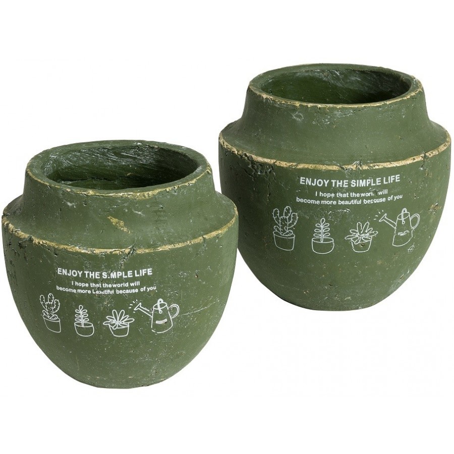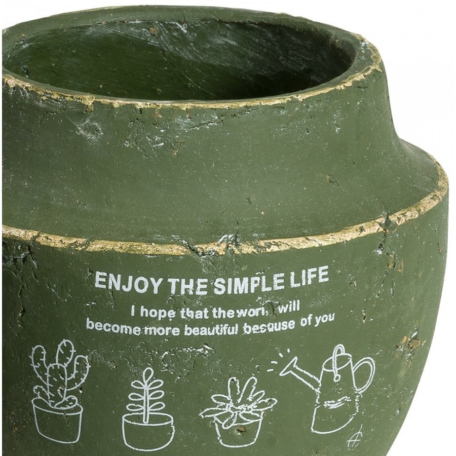 Stylowa, rzucająca się w oczy donica Belldeco z serii Enjoy w ciemnooliwkowym kolorze z pięknymi rysunkami na froncie.