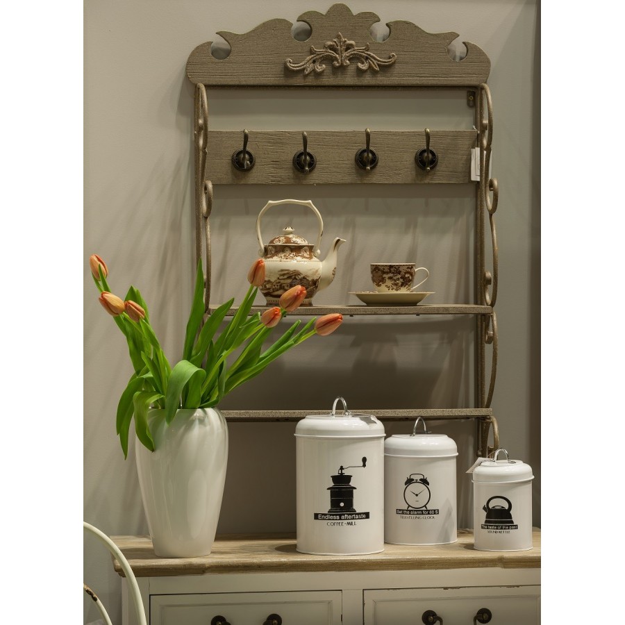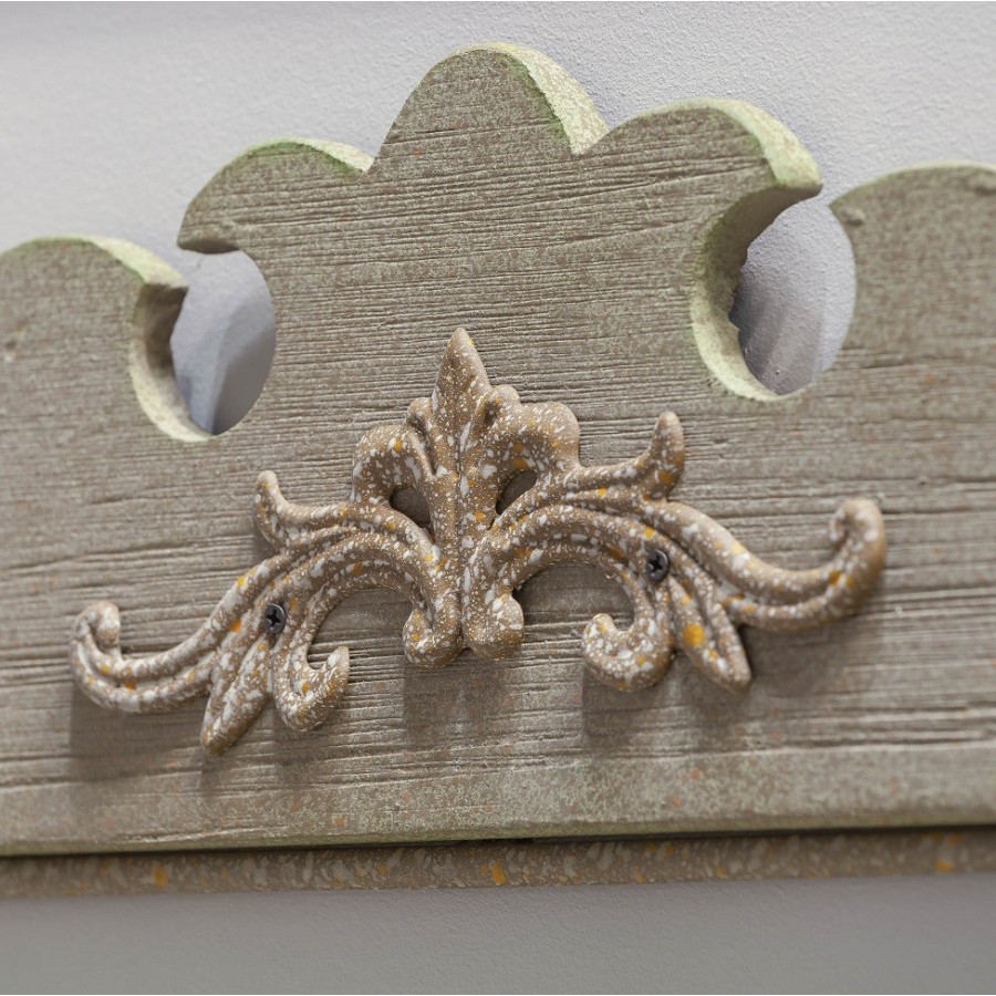 Mogąca służyć za elegancki wieszak na klucze i półkę na przedmioty codziennego użytku półka wisząca firmy Aluro to wspaniale skomponowana proporcja drewna i metalu, z której powstało praktyczne dzieło sztuki. Cztery metalowe wieszaczki i dwie drewniane półki. Wszystko to otoczone fantazyjnie ukształtowaną konstrukcją i zwieńczone drewniano-metalowym szczytem.