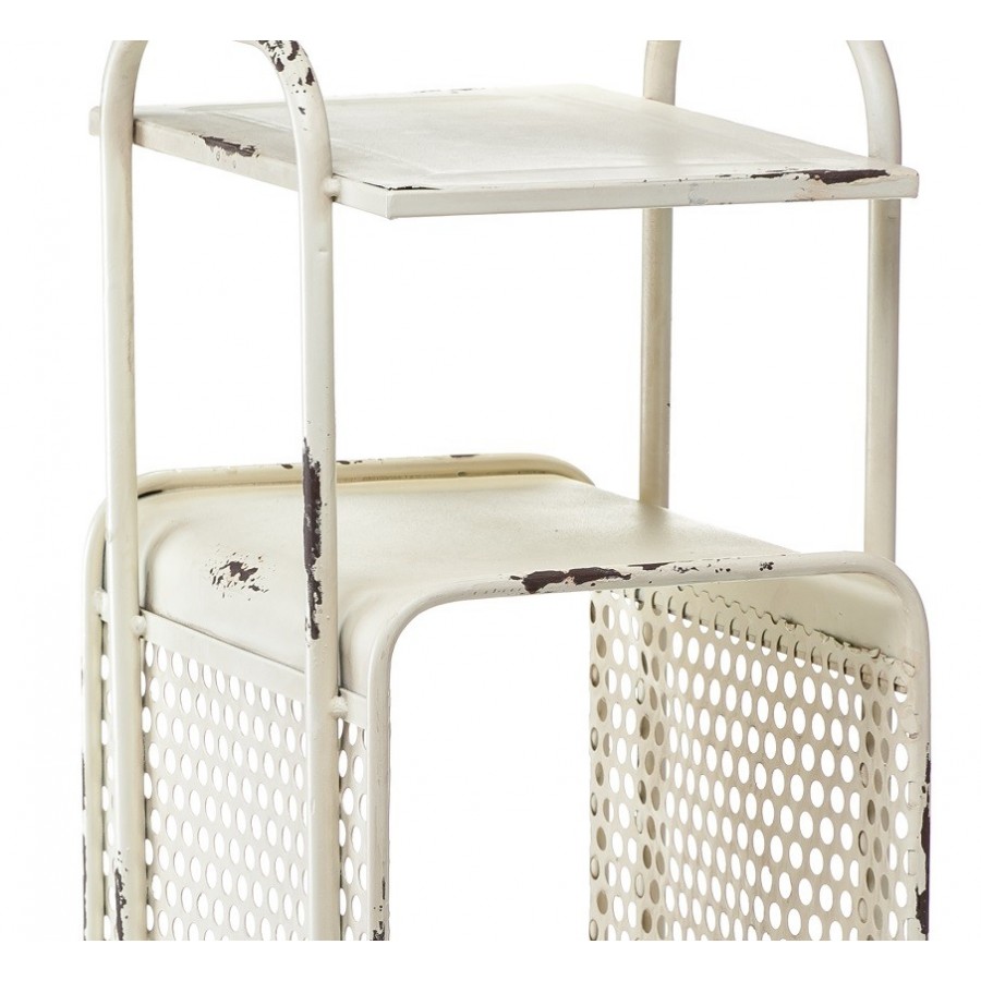 Gazetnik Aluro wyposażony jest w pojemnik na gazety oraz wygodną półeczkę. Mebel w kolorze białym, przecierany.