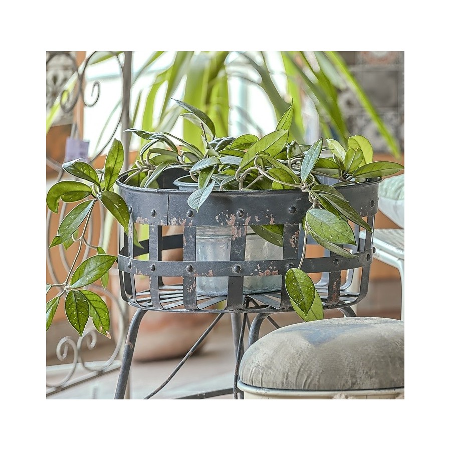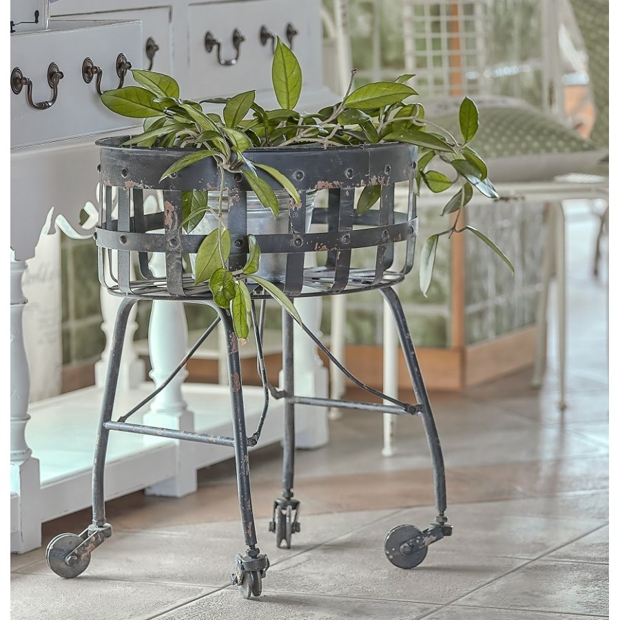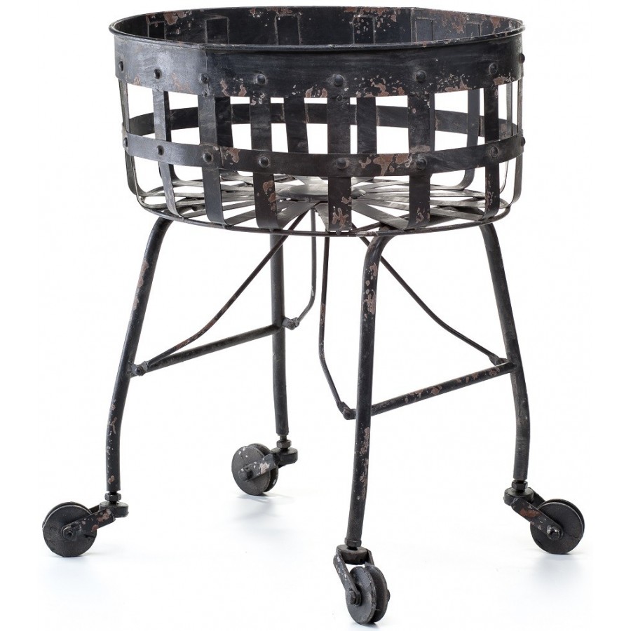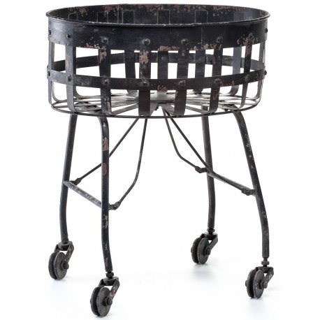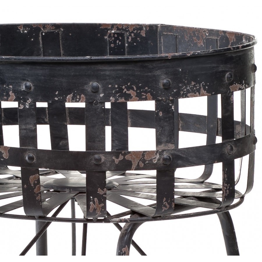 Kwietnik z serii Aluro został zaprojektowany w zupełnie oryginalny sposób. Ten metalowy pojemnik składa się z obszernego kosza oraz stojaka z czterema nogami, zakończonego kółeczkami. Kwietnik pomalowano na czarno oraz wyposażono w gustownie wyglądające przetarcia. Polecamy!
