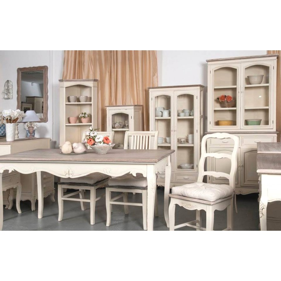 Regał w stylu francuskim z prześlicznymi, białymi półeczkami oraz eleganckim wykończeniem to cudowny mebel o klasycznie pięknym wyglądzie.