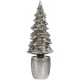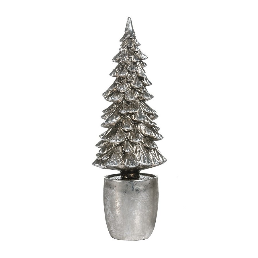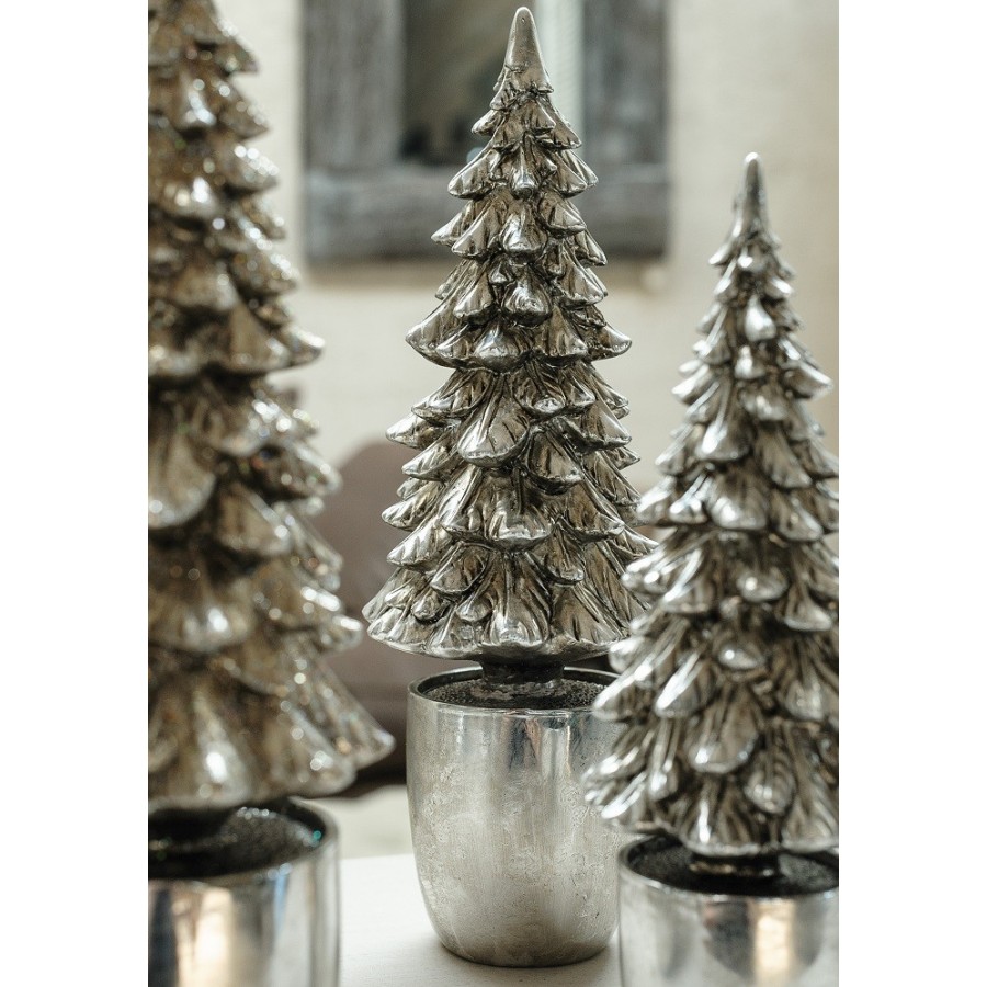 Zachwycająca prostową i minimalizmem, srebrna choinka na stabilnej podstawie z ciekawymi detalami.