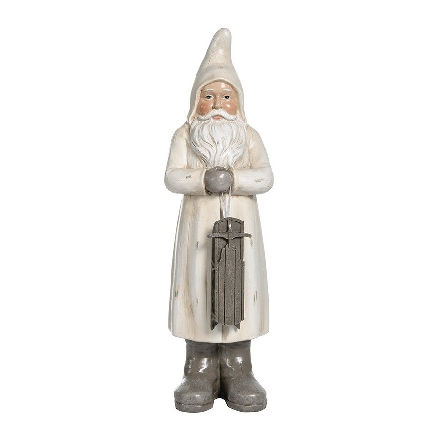 Urocza, dużych rozmiarów figurka Mikołaja odziana w jasny długi płaszcz, czapkę oraz buty. Na sznurku zaczepionym o ręce wiszą sanki symbolizujące prezenty. Duży Mikołaj Belldeco to wspaniała okazja na wprowadzenie świątecznego klimatu do naszych wnętrz.