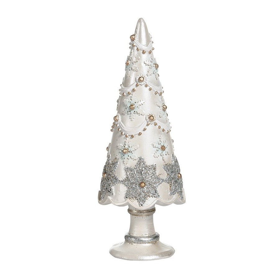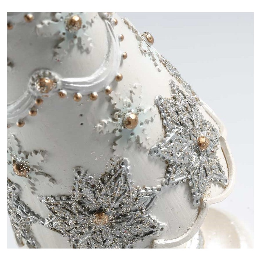 Cudownie wyglądająca choinka Belldeco to figurka świątecznego drzewka, którą ubrano w przepięknie wyglądające ozdoby. Na gałązkach białego drzewka, znajdują się srebrzyste gwiazdki, białe płatki śniegu oraz złociste łańcuchy. Figurka wygląda wybitnie- polecamy!