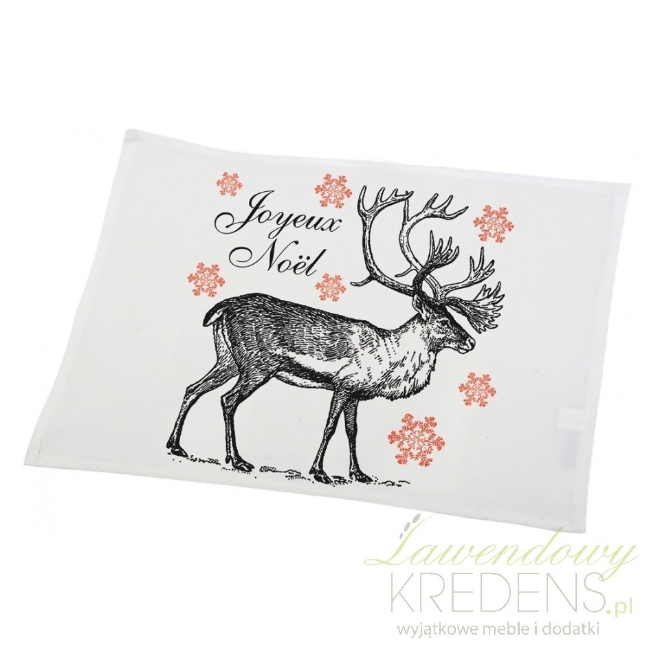 Magiczno-świąteczne serwety na stół to idealny pomysł na wprowadzenie przyjemnego nastroju w naszych pomieszczeniach. Serwety na stół marki French Home przedstawiają roslego łosia w otoczeniu czerwonych płatów śniegu, wszystko na białym tle 100% bawełny. Niekowencjonalne i zabawne!