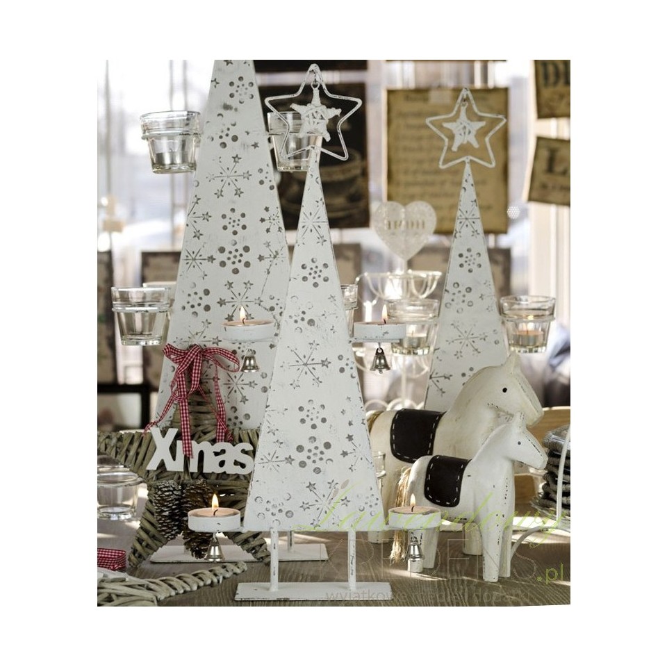 Choinka świecznik - może stać się niesamowitą ozdobą wnętrza, a nawet świątecznego stołu. Forma choinki, łącząca metalową konstrukcję z gwiazdą z miejscem na cztery świece typu tea light, sprawia, że choinka świecznik wygląda równie dobrze w dzień i w nocy, gdy zapalone są świece.