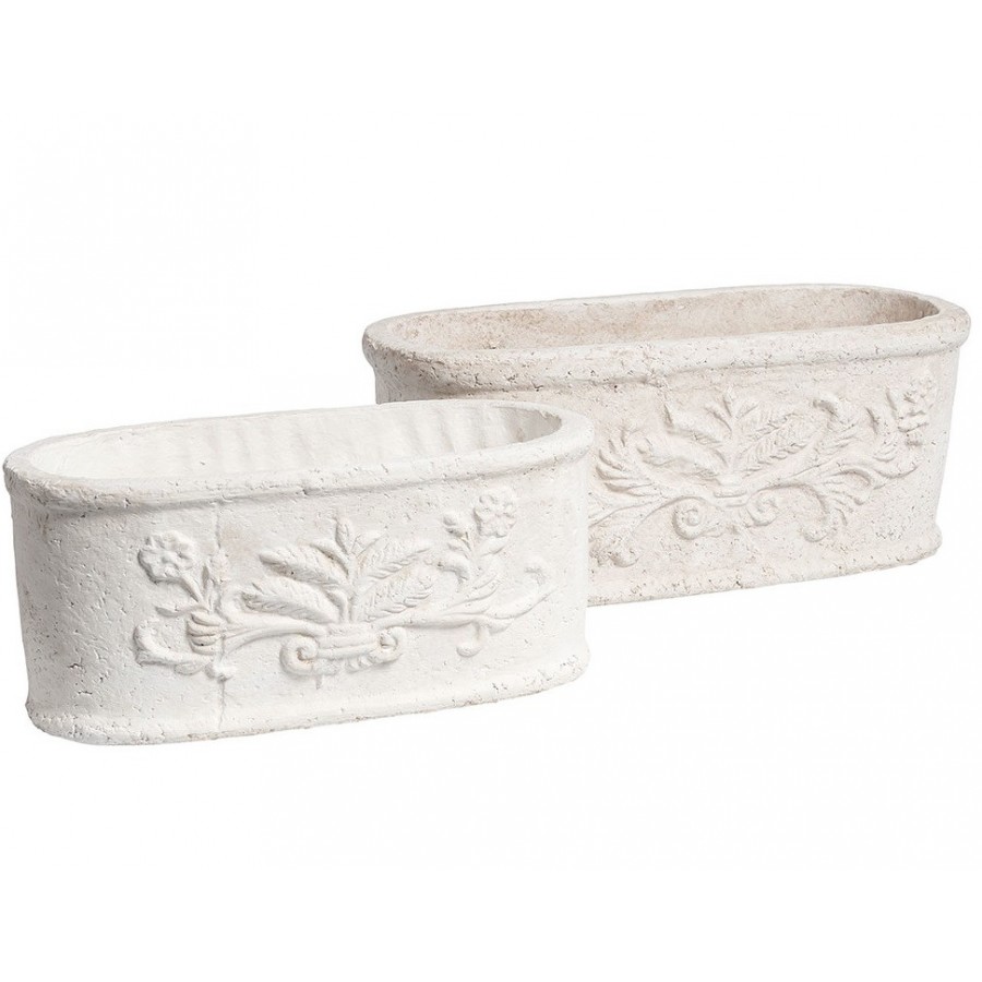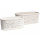 Donice Belldeco o podłużnym kształcie zostały pomalowane na biało oraz ozdobione zachęcająco wyglądającym wzorem. Na frontowych ściankach naczyń, umieszczono zachwycający motyw ozdobny w postaci delikatnych wiązek roślinnych. Produkty wyglądają niezwykle estetycznie i stylowo. Zachęcamy do nabywania!