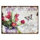 Fantastyczne obrazki francuskie w klimacie wiosennym z bukietem czerwonych tulipanów i francuskich napisów.