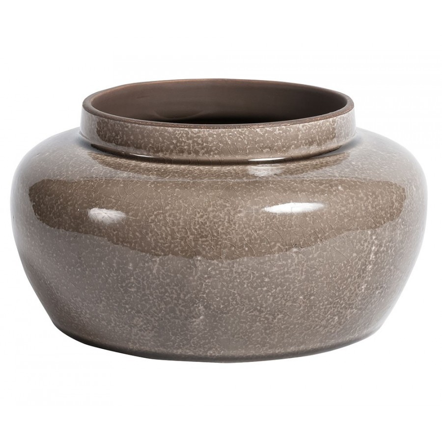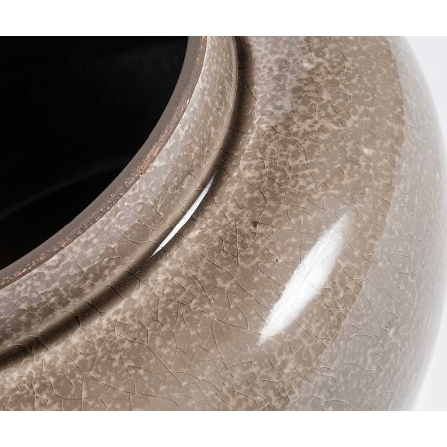 Ceramiczne osłonki na doniczki są lakierowane z zewnątrz, z celowymi zdobieniami w formie delikatnych popękań pod lakierem.