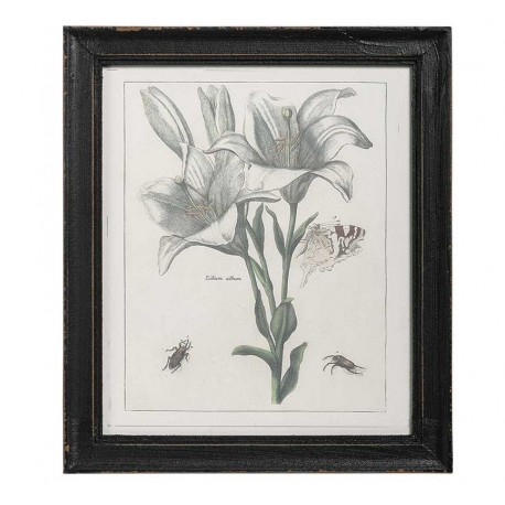 Obraz retro Belldeco kwiaty to przedmiot, który zachwyci każdego podziwiającego. Na powierzchni płótna, bowiem widnieje grafika trzech kwiatów lilii o cudownie wyglądających kielichach. Na łodyżce kwiatu, przysiadł barwny motyl, a pod rośliną pełzają uroczo nakreślone owady. Obraz ujęto w drewnianą ramę wyposażoną w postarzenia. Produkt prezentuje się przecudownie! Obraz jest przeszklony i posiada drewnianą ramę.