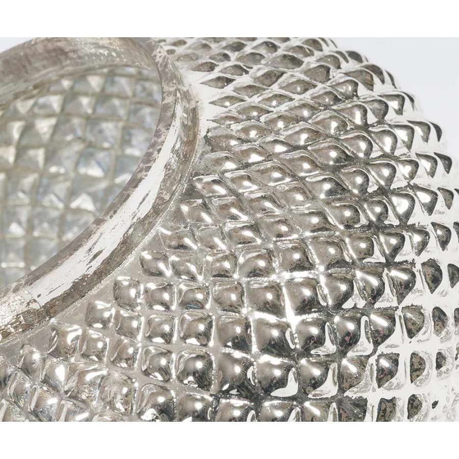 Szklane lampiony Belldeco to urocze naczynia, których ścianki wyposażono w wypustki o kształcie rombów. Przedmioty są srebrne a ich pękata forma, prezentuje się nadzwyczaj uroczo. Do wnętrza lampionu możesz włożyć różne rodzaje świec. Polecamy!