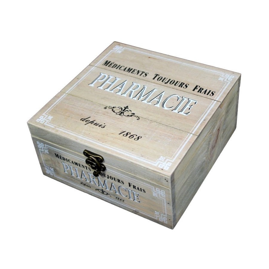 Apteczka drewniana w formie skrzyneczki z zamkiem to dobry sposób na przechowywanie lekarstw w funkcjonalnym porządku.