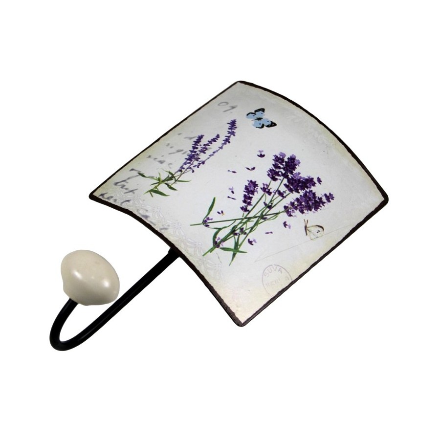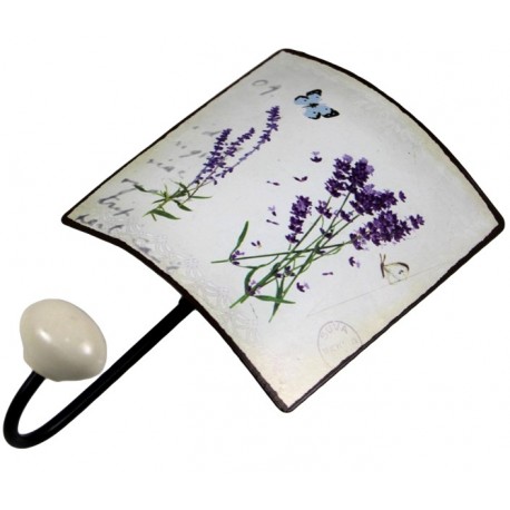 Pojedyncze metalowe wieszaki ścienne nie tylko do kuchni, z przeuroczym motywem lawendy na tabliczce. Cudo!