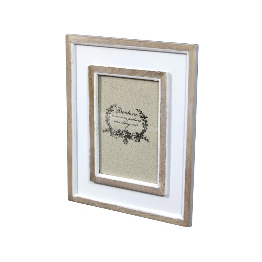 Dodatki w stylu prowansalskim, a wśród nich drewniane ramki to świetna dekoracja mieszkania. Drewniana ramka wykonana została z drewna i szkła. Ma biały kolor i kształt prostokątu. Wygląda jakby jedna ramka była włożona w drugą.