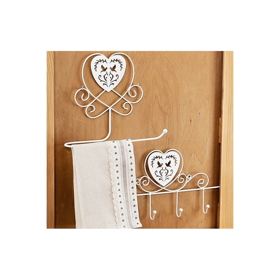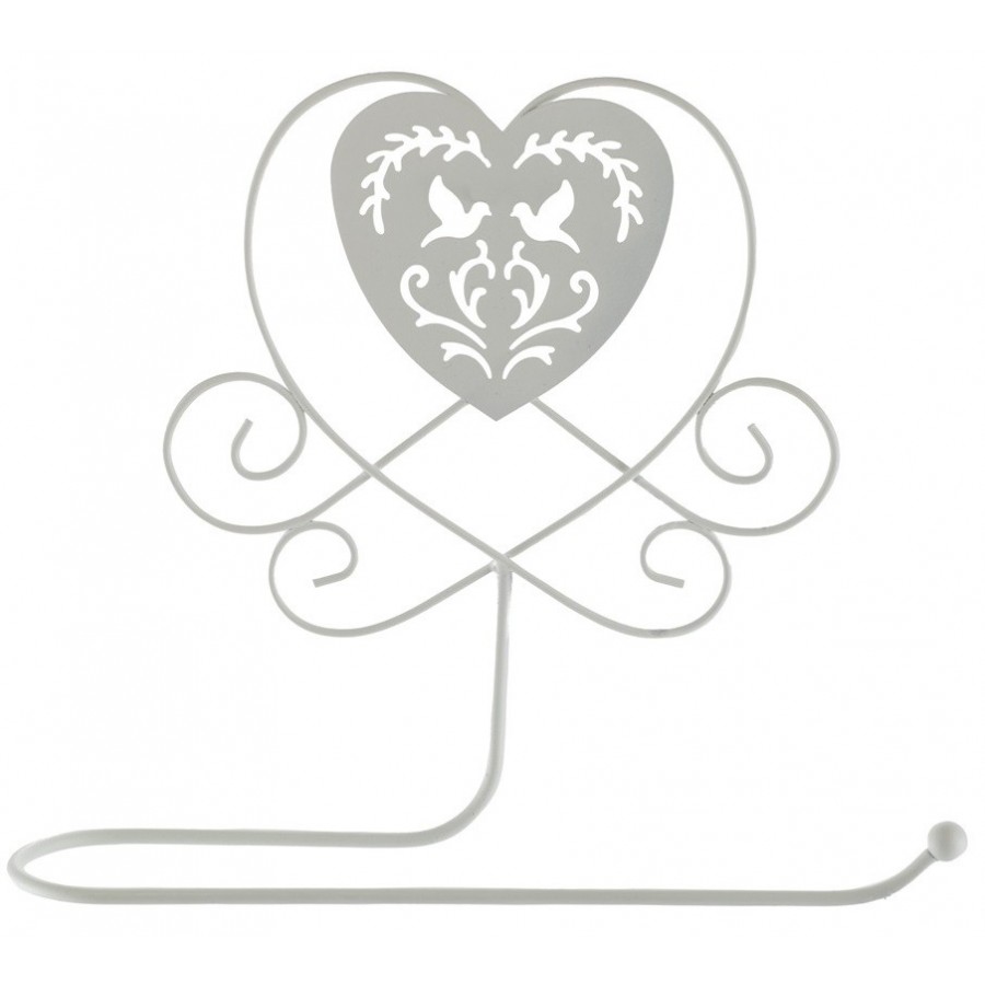 Wieszak shabby chic biały, w kształcie serca, w środku którego znajdują się dwa gołębie. Metalowy wieszak na ściereczkę idelanie sprawdzi się by przymocować go do ściany lub drzwi kuchni. Wieszaki ścienne są praktyczne i umożliwiają utrzymać porządek w pomieszczeniu. Dzięki nim żadna ściereczka lub ręcznik nie będzie plątać się w mieszkaniu.