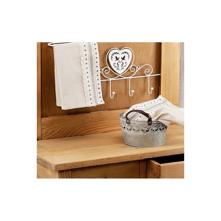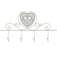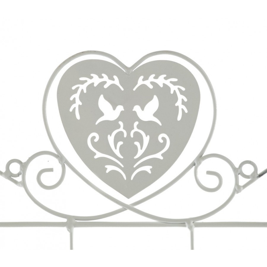 Niezwykle pobudzające wyobraźnię wieszaki ścienne z motywem serca i pary gołębi w otoczeniu finezyjnych dekoracji z pięknie ukształtowanych prętów. Praktyczny ze względu na cztery wieszaki umieszczone w jednym rzędzie, dzięki białemu kolorowi świetnie wyglądać będą zarówno w kuchni, łazience czy szafie w holu. Podkreśl swój styl - wieszak Shabby Chic!